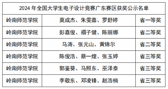 (2024年全国大学生电子设计竞赛广东赛区获奖公示名单)