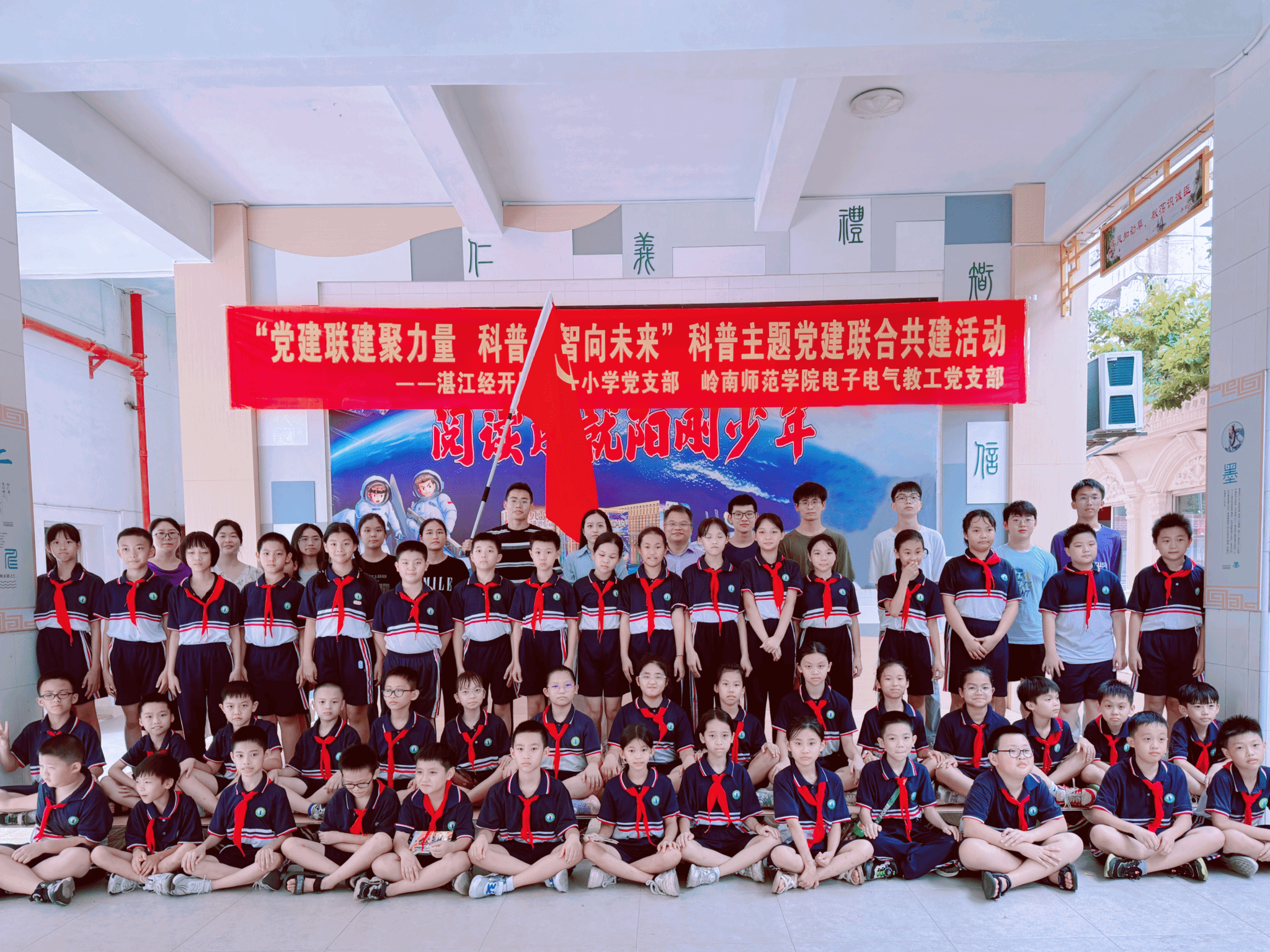 为深入学习贯彻党的二十大精神,构建党组织优势互补、互相促进的党建工作新格局,我校电子与电气工程学院电子电气教工党支部联合学院学生支部志愿者,与湛江经开区第一小学党员教师一起,为区一小四年级学生在该校博雅堂开展科学实验知识科普活动。